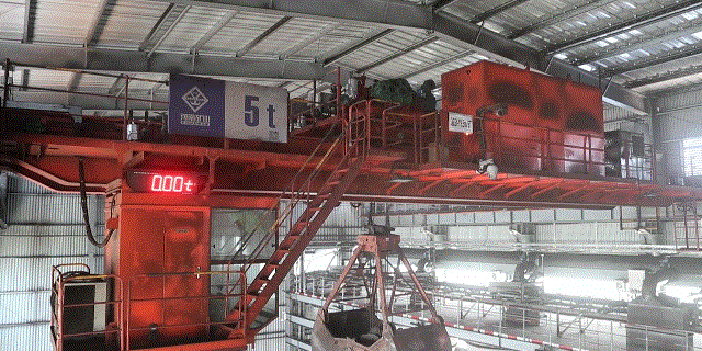 ▲无人化抓斗起重机顺畅运行